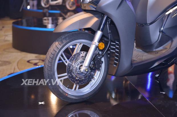 SH 300i sử dụng bộ vành nhôm 16 inch với nan kép hình xoáy, lốp trước trước 110/70, lốp sau 130/70, đi kèm là hệ thống giảm xóc ống lồng 35 mm.