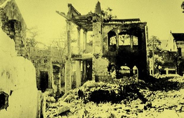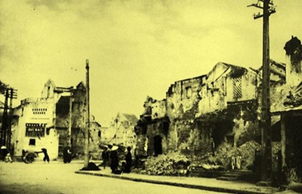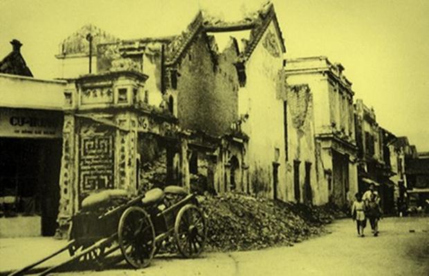 Năm 1946, nhà nước Việt Nam non trẻ vừa ra đời phải đối phó với thù trong giặc ngoài. Xác định không thể tránh được cuộc chiến tranh chống Pháp, Chủ tịch Hồ Chí Minh đã ra lời kêu gọi Toàn quốc kháng chiến. Thủ đô Hà Nội nổ phát súng đầu tiên. Suốt 2 tháng kìm chân quân Pháp, nhiều nơi ở phố cổ bị phá hủy nặng nề. Chùm ảnh được nhà giáo lịch sử Đoàn Thịnh và con trai là KTS Đoàn Bắc sưu tầm và giới thiệu trong bộ sưu tập ảnh quý giá - 'Ký ức Hà Nội xưa' (1870-1954).