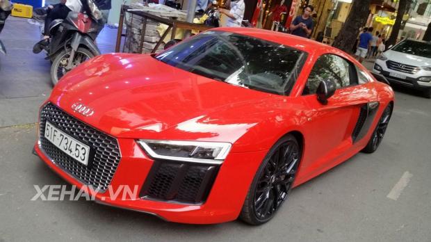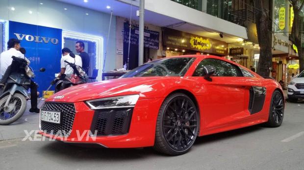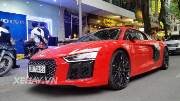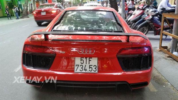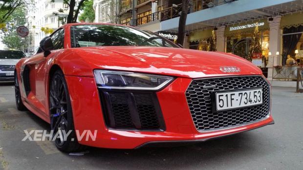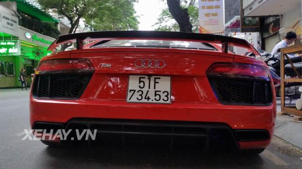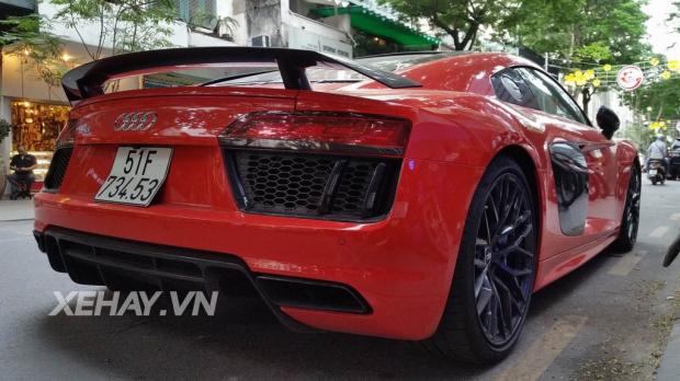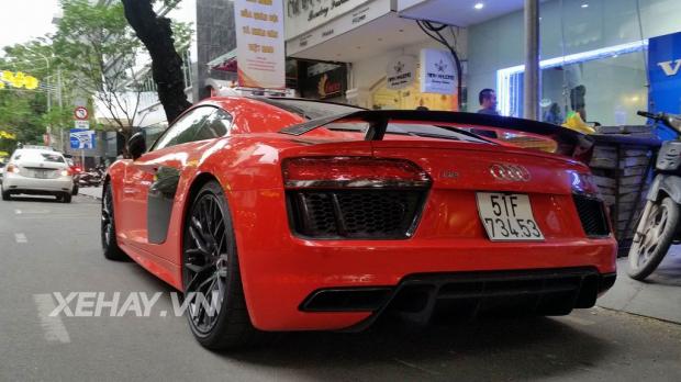 Sở hữu ngoại hình được đánh giá là đẹp nhất của Audi hiện nay, R8 V10 Plus nổi bật với phần lưới tản nhiệt lớn hình tổ ong, hốc hút gió hai bên được sơn đen tạo điểm nhấn tương phản với màu sơn đỏ nhằm gây sự chú ý và tạo sự khác biệt,