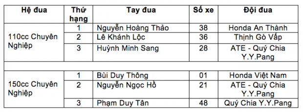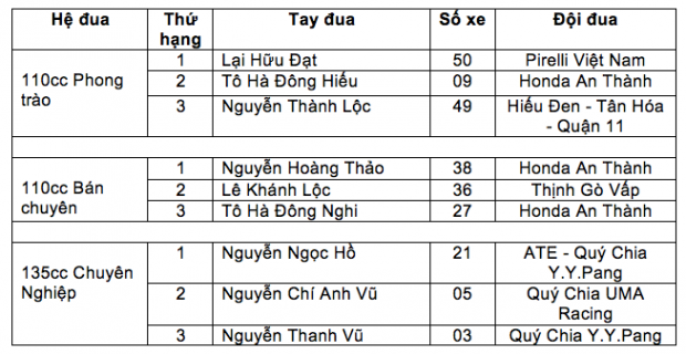 Các anh tài của làng đua xe môtô thể thao tại Việt Nam như Nguyễn Quang Khải, Tô Hà Đông Nghi, Đồng Quốc Tài, Bùi Duy Thông… đều góp mặt. Các tay đua thi đấu theo thể thức đấu loại, chọn những tay đua xuất sắc vào bán kết, chung kết.