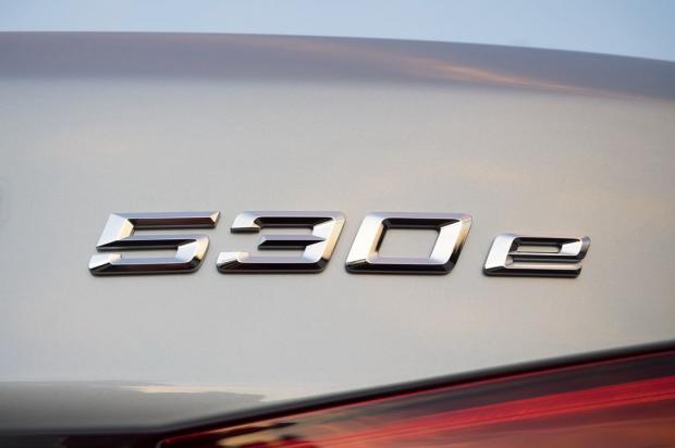 Bên ngoài, 5-Series điện hoá đặc trưng với lưới tản nhiệt hình quả thận màu xanh, trung tâm la zăng màu xanh, biểu tượng eDrive trên trục C, logo 530e trên cốp xe, và cổng sạc nằm ở giữa trục A và vòm bánh xe trước, phía bên tài xế.