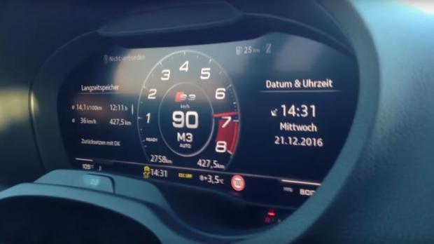 Điều cả Audi S3 và Golf R còn thiếu (cho đến tận bây giờ) là bảng điều khiển kỹ thuật số hiển thị quá trình tăng tốc từ 0-100 km/h của xe trong 3.2 giây và đến 200 km/h trong 10.8 giây.