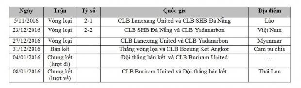 Trước đó, ngày 5/11/2016, tại trận vòng loại đầu tiên diễn ra ở sân vận động Anouvong, Viên chăn, Lào, đội SHB Đà Nẵng đã để đội bạn Lanexang United (đại diện của Lào) dẫn với tỉ số 2-1. Trận thứ hai CLB SHB Đà Nẵng (đại diện cho Việt Nam) thi đấu với CLB Yadanarbon (đại diện cho Myanmar) tại Sân vận động Mỹ Đình, Hà Nội, (Việt Nam).