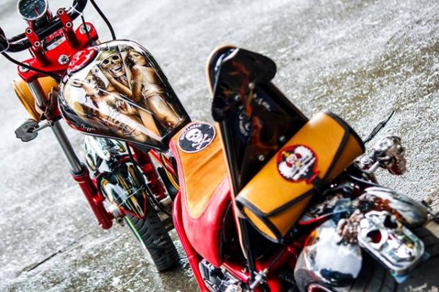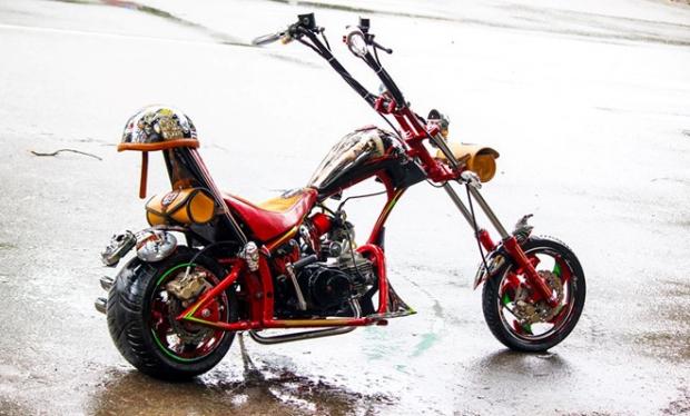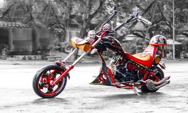 Chiếc xế độ phong cách chopper thuộc sở hữu của một người chơi xe ngoài 60 tuổi ở Sài Gòn. Từng có cơ hội đi nhiều nơi trên thế giới, đặc biệt là Mỹ, biker lớn tuổi này rất mê dòng chopper và mini chopper.