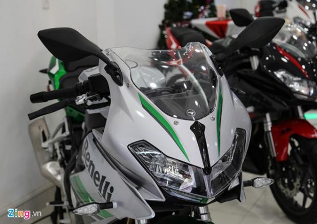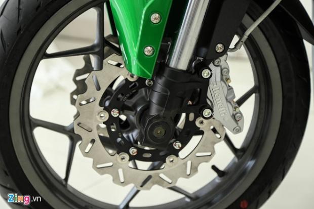 Cụm phanh đĩa kiểu cánh hoa đường kính 260 mm với lỗ tản nhiệt. Kẹp phanh Benelli 4 piston. Vành trước đường kính 17 inch, chiều rộng lốp 110 mm.
