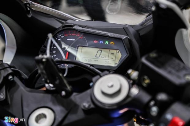 Bảng điều khiển trung tâm gồm cụm đồng hồ báo tua máy giới hạn lên tới 14.000 vòng/phút. Đồng hồ LCD đơn sắc hiển thị các thông số hành trình như tốc độ, lượng xăng trong bình, quãng đường đã đi... Nhìn chung cụm đồng hồ hiển thị ở mức khá, đủ quan sát các thông số cần thiết trong khi di chuyển mà không bị mất tập trung.