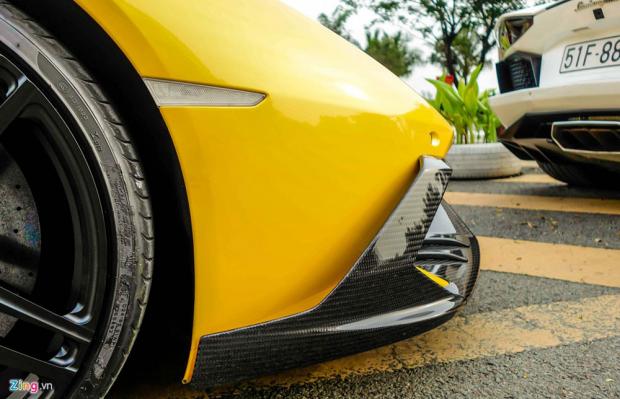 Huracan màu vàng nguyên bản mua lại từ một đại gia bất động sản ở TP.HCM. Sau khi về tay Cường Đô La, chiếc xe được lột xác toàn diện. Đầu tiên, thiếu gia phố núi sơn đen nóc và nắp động cơ.