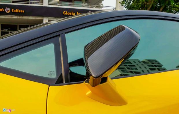 Gương cánh được thay mới bằng loại bọc sợi carbon bóng loáng. Sợi carbon là chất liệu nhẹ hơn nhôm nhưng cứng hơn thép, được ứng dụng rộng rãi trong ngành công nghiệp siêu xe và hàng không vũ trụ. Nhờ tính chất vật lý đặc biệt và dễ gia công, lại giúp xe nhẹ hơn đáng kể nên sợi carbon là vật liệu không thể thiếu trên những siêu xe hàng đầu.