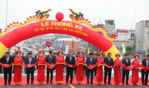 Phó Thủ tướng Trương Hòa Bình, lãnh đạo Bộ GTVT, Ủy ban ATGT quốc gia và lãnh đạo UBND TP Hà Nội cắt băng khánh thành cầu vượt Ô Đông Mác - Nguyễn Khoái