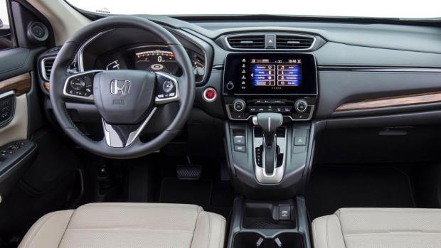 Nội thất xe Honda CR-V 2017 cũng có thay đổi mạnh mẽ. Ấn tượng mạnh nhất đến từ cụm điều khiển phía trước được bố trí lại hoàn toàn. Đặt ở trung tâm là một màn hình 7 inch cảm ứng với khả năng kết nối Apple CarPlay và Android Auto. Ngay bên dưới là phần cần số được thiết kế lại rất sang trọng.