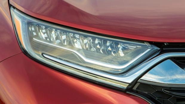 Phần đầu xe Honda CR-V 2017 nổi bật lên với cụm đèn chiếu sáng hoàn toàn bằng LED hiện đại, tương tự như trên mẫu xe Accord và Civic mới. Lưới tản nhiệt của xe tạo thành hình thang ngược, đem đến sự khoẻ khoắn hơn hẳn so với thế hệ trước. Thiết kế này giúp người ta dễ dàng liên tưởng tới những mẫu xe của thương hiệu hạng sang Acura.