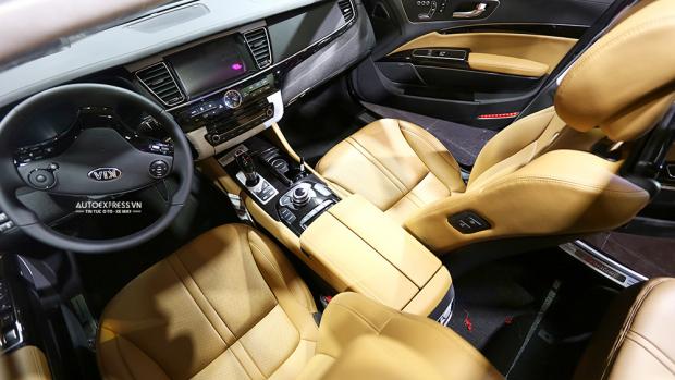 Đúng đẳng cấp của xe sedan cỡ lớn hạng sang, không gian bên trong xe Kia Quoris được trang hoàng bằng vật liệu da sang trọng, ghế ngồi của xe bọc da Nappa còn trần xe được chế tác từ da lộn đắt tiền.