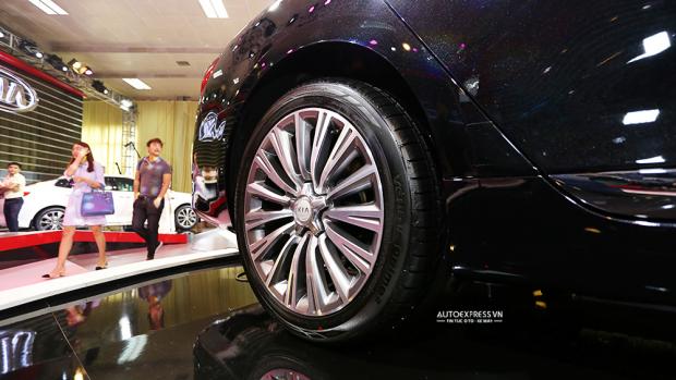 Những chi tiết chrome đúng chất xe sang còn được “dát” ở viền kính và nẹp hông của xe. Bên cạnh đó, tô điểm cho vẻ vững chãi của mẫu sedan cao cấp này là bộ vành đa chấu có kích thước lên tới 19 inch.