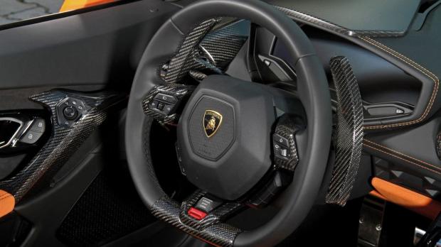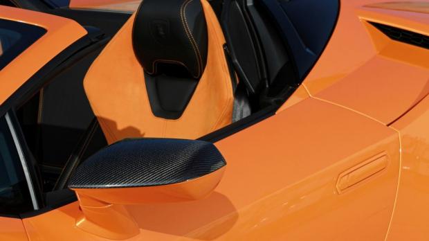 Sợi carbon được xuất hiện nhiều trên thân xe của Lamborghini Huracan Spyder từ bộ khuếch tán hoàn toàn mới cho đến hệ thống ống xả titan mới của Akrapovic, giúp cắt giảm 20kg trọng lượng xe. Bên cạnh đó, bộ ống xả cũng đặc biệt giúp công suất của động cơ được tăng thêm khoảng 20 mã lực và 22 Nm mô-men xoắn cực đại.