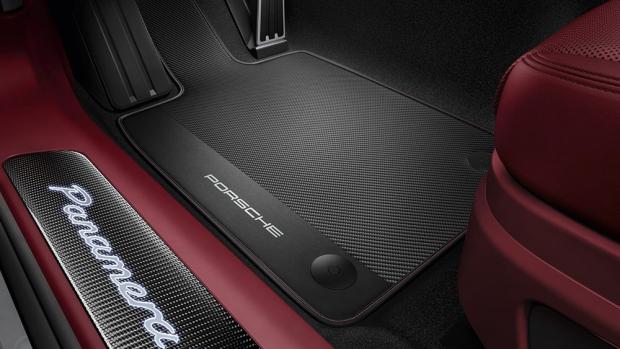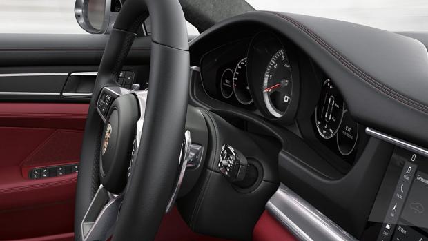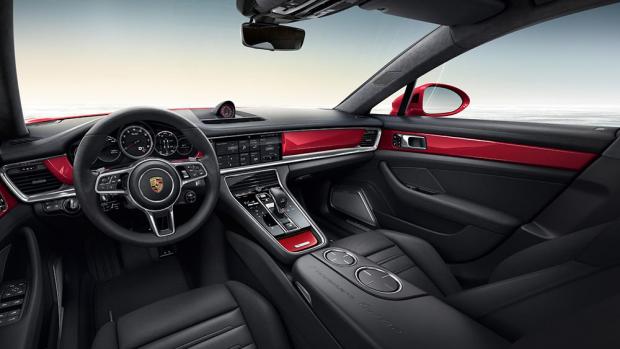 Nội thất đỏ đen của xe Porsche Panamera Executive.