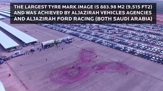Kỷ lục thế giới mới về ‘Dấu lốp xe lớn nhất’ đã được dành cho bộ đôi Ford Mustang RTR-Ds. Nhà phân phối của Ford tại Ả rập đã đảm nhiệm việc thử thách hai chiếc ‘ngựa hoang’ này với việc cầm cương thuộc về hai tay lái Abdulhadi Al-Qahtani và Muath Al-Essa.