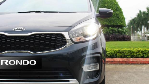 Kia Rondo sở hữu kiểu dáng nổi bật nhờ đèn pha HID, tích hợp đèn LED chạy ban ngày. Cản trước và cụm đèn sương mù được thiết kế lại theo hướng mở rộng sang hai bên cá tính và thể thao hơn.