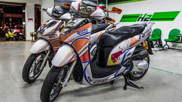 Hai chiếc Honda SH300i thuộc hai thế hệ vừa được lên dàn áo đấu kiểu Repsol tại Việt Nam. Với bộ tem mới này, bộ đôi xe scooter phân khối lớn đến từ Honda đã thay đổi phong cách hoàn toàn.