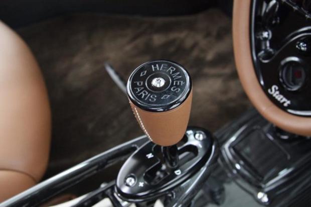 Bên trong nội thất xe là nơi để hãng thời trang Hermes biểu diễn tài nghệ của mình. Các chi tiết bọc da từ ghế ngồi cho đến vô lăng, hay những chi tiết trên bảng táp lô đều được các nghệ nhân của Hermes chế tác tinh xảo. Cần số của xe cũng được khắc lên dòng chữ Hermes tinh tế.