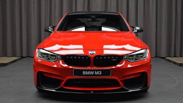Một chiếc BMW M3 đã được khoác lên mình lớp sơn đỏ Ferrari khá bắt mắt. Sự tương phản giữa hai tông màu đỏ/đen khiến cho chiếc xe trở nên nổi bật và cá tính. Xe được trang bị bộ kit khí động học M Performance, phanh gốm M, rất nhiều chi tiết carbon và cặp ống xả Akrapovic Evolution. Bộ vành của xe có dạng cánh sao với kích thước 20 inch.