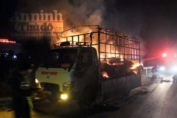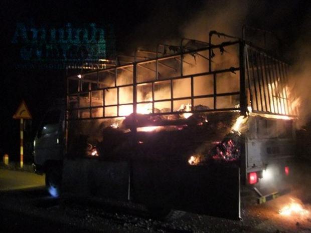 Mặc dù không gây thiệt hại về người, nhưng toàn bộ số hàng hóa sau thùng chiếc xe tải gồm áo quần, hàng hóa, hoa quả gần như bị cháy rụi hoàn toàn.