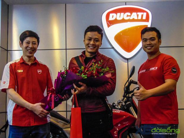 Hồng Đăng (giữa) nhận chúc mừng từ đại diện Ducati Việt Nam.