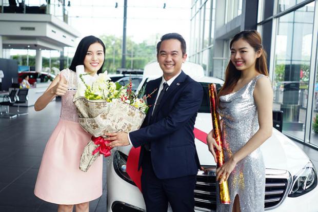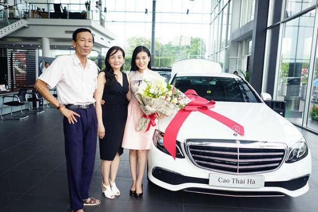 Buổi lễ giao xe vừa diễn ra hôm nay tại đại lý Mercedes-Benz Vietnam Star Trường Chinh. Đến nhận chiếc E 200 2017 mới cứng cùng với Cao Thái Hà còn có ba mẹ của cô.