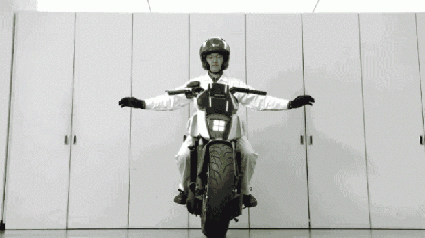 Hình ảnh cho thấy lúc mô tô chuyển sang chế độ tự cân bằng.