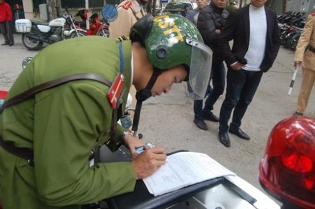 Lực lượng CSTT lập biên bản xử phạt các trường hợp trông giữ xe trái phép