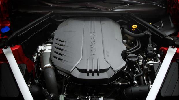 Về động cơ, xe Kia Stinger sở hữu hai tuỳ chọn máy xăng cho thị trường Bắc Mỹ và một diesel tại Châu Âu. Với máy xăng, xe được trang bị loại tăng áp 4 xi-lanh, dung tích 2 lít, sản sinh công suất 255 mã lực và mô-men oắn 352 Nm.