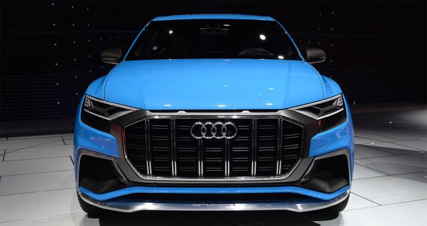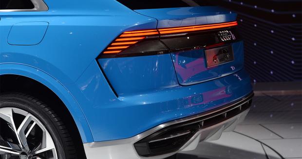 Thiết kế tổng thể của Q8 Concept mang đậm chất thể thao thông qua những chi tiết góc cạnh đầy mạnh mẽ. Đèn pha LED sắc sảo, lưới tản nhiệt đặc trưng của hãng, cản trước thể thao kết hợp hai hốc gió lớn 2 bên. Thân xe nổi bật với những đường gân dập nổi, ốp sườn, cản trước, cản sau kết hợp lại tạo thành một đường bao vòng quanh xe. Mâm xe 23 inch đi kèm lốp 305/35.