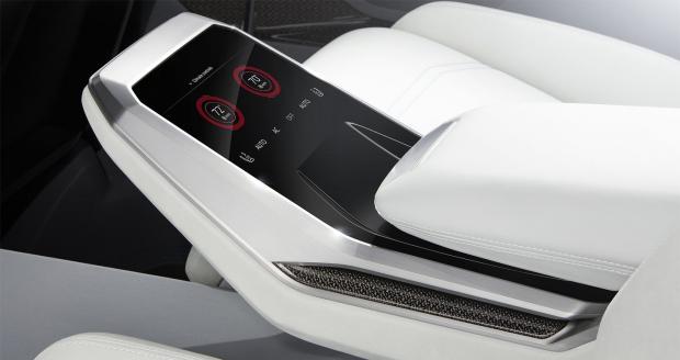 Tiến ra phía sau, cụm đèn hậu được làm trải dài nối liền hai bên, đây dường như đang là một xu hướng mới trong phong cách thiết kế xe hơi của tương lai. Là một mẫu xe E-Tron sử dụng động cơ kết hợp xăng và điện, thế nên hệ thống ống xả của xe không xuất hiện ở phần đuôi mà chỉ được tạo hình giả trên cản sau.