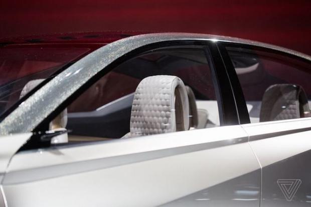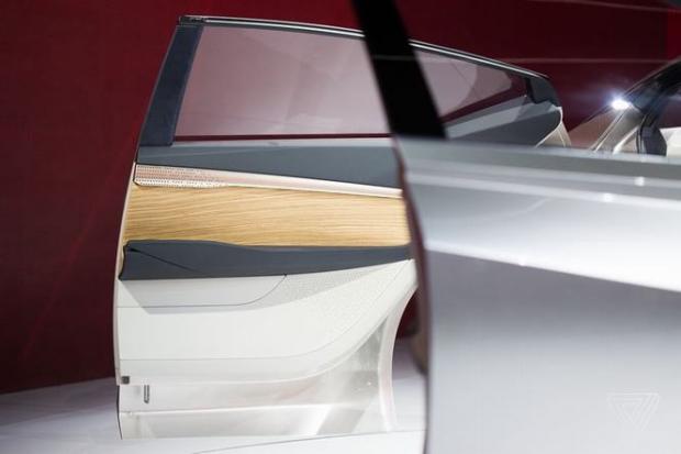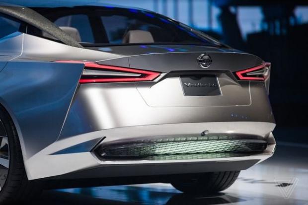 Điểm đặc biệt là Nissan Vmotion 2.0 Concept không còn gương chiếu hậu và thay vào đó là hệ thống camera dày đặc, đồng thời sở hữu kiểu cửa mở ngược mang phong cách như ở dòng xe siêu sang Roll Royce. Bánh xe kích thước 21 inch và lốp xe thể thao siêu mỏng mới cũng góp phần khiến chiếc xe tăng sự thu hút và bắt mắt hơn.