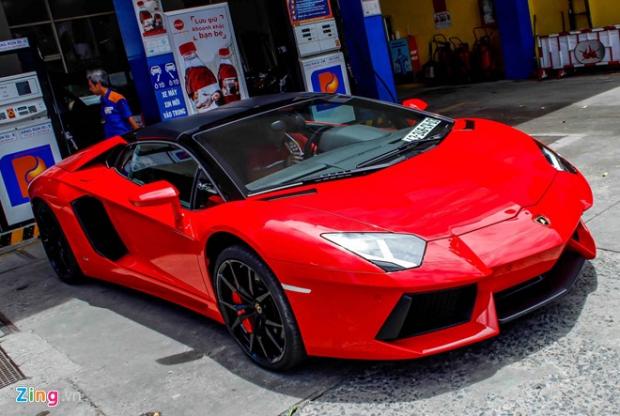 Aventador Roadster trong một lần đi đổ xăng ở Sài Gòn. Ảnh: TNTBros.