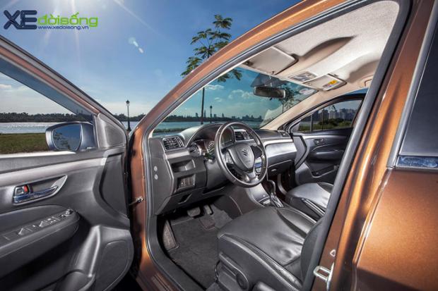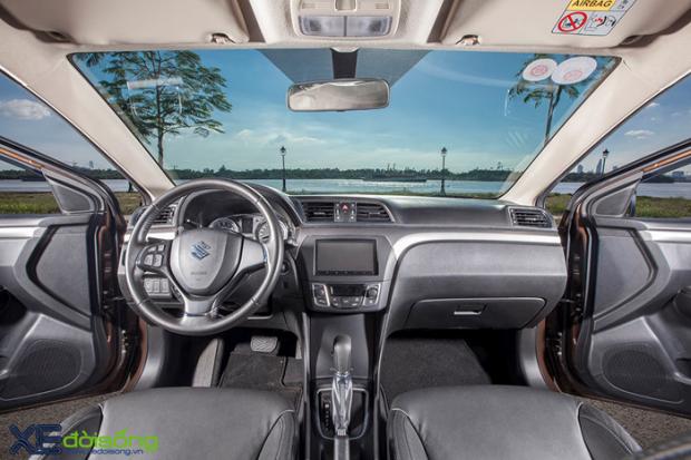 Bước vào khoang cabin, ấn tượng tốt có thể nhận thấy ngay với Suzuki Ciaz là không gian nội thất xe rộng rãi, cùng với bộ ghế ngồi bọc da. Ngồi thử ở các vị trí ghế cả trước và sau, khoảng để chân cũng như không gian trên đầu người ngồi rất thoải mái đối với một chiếc sedan hạng B. Suzuki nhấn mạnh rằng Ciaz là chiếc xe rộng rãi nhất phân khúc và nhà sản xuất này lấy đây là một điểm mạnh để vượt trội so với các đối thủ.