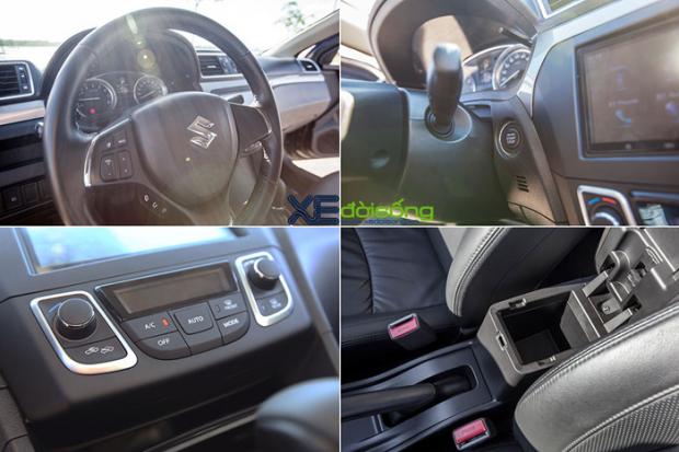 Thiết kế nội thất của Ciaz không hào nhoáng, nhưng cũng không đơn điệu, và tận dụng tối đa không gian, ví dụ như ngay bên trái vô-lăng có bố trí một hộc nhỏ có thể để điện thoại – một thiết kế rất khó tìm thấy trên đa phần các mẫu xe khác. Vô-lăng Ciaz được thiết kế bay bổng hơn, tích hợp bộ nút điều khiển âm thanh, trong khi bảng điều khiển trung tâm gọn gàng, giản lược các nút bấm. Cụm đồng hồ được đánh giá điểm cộng nhờ thiết kế các con số và vạch rõ ràng, dễ đọc các thông số cho người lái.