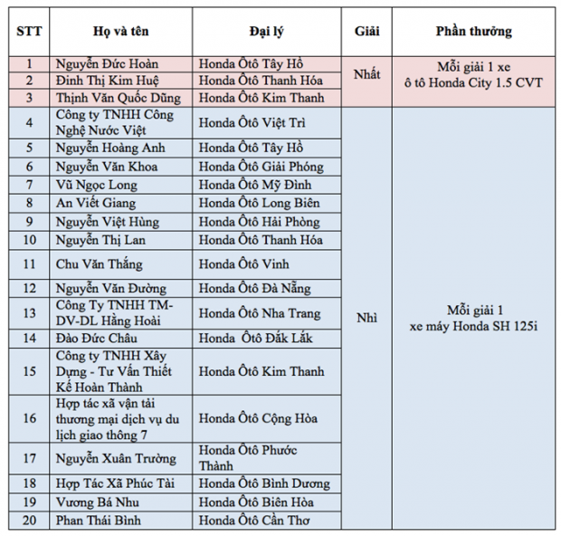 Chương trình “Lái thử, đặt xe, trúng City” của Honda Việt Nam vừa thông báo kết quả bốc thăm trúng thưởng 3 xe Honda City và 17 xe Honda SH125i.
