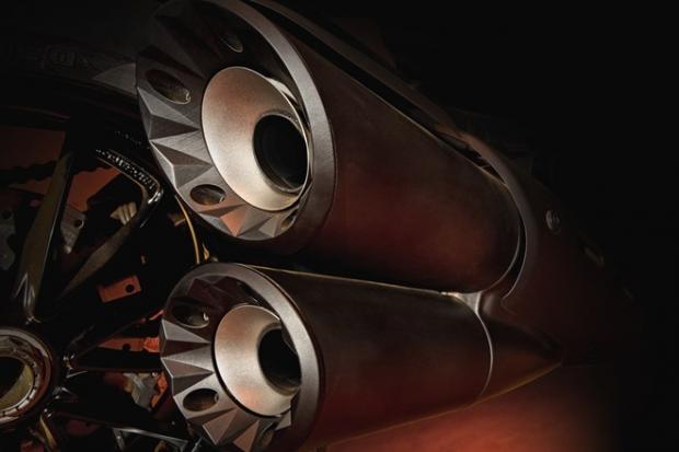 Ngàm phanh Brembo đỏ cùng hệ thống ống xả còn được phủ gốm Zircotec đen.