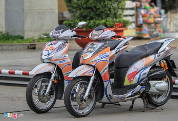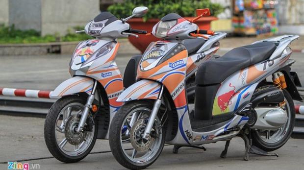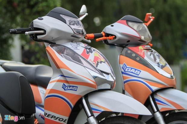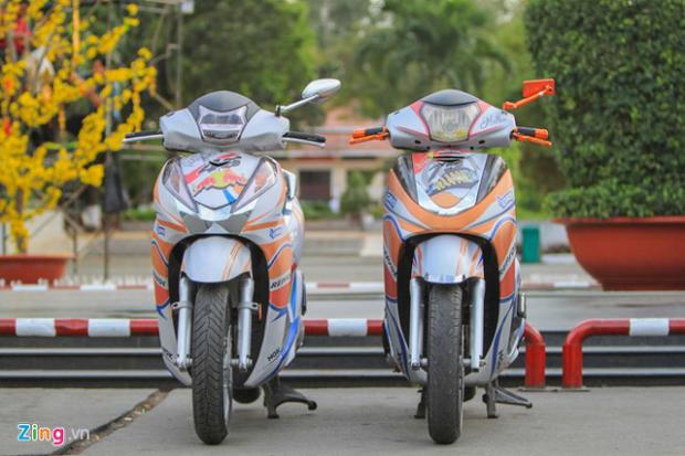 Hai chiếc xe được độ theo phong cách đồng nhất với bộ tem màu vàng với chủ đề đón năm mới.