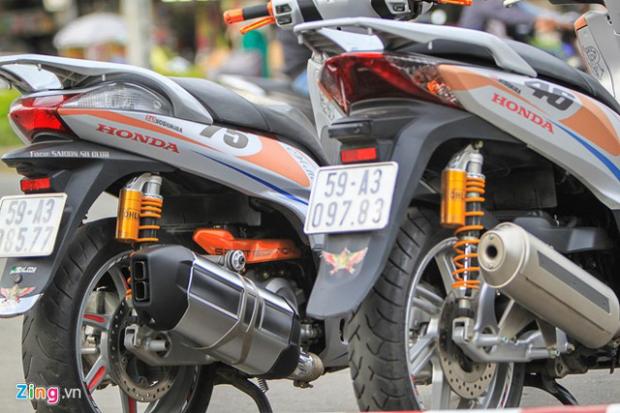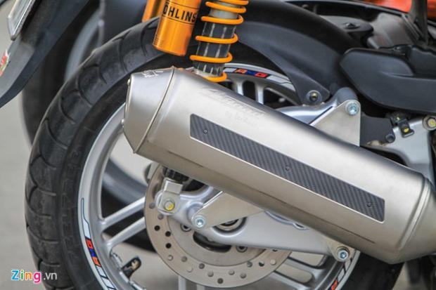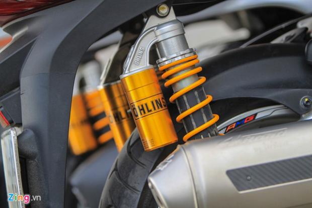 Ngoài ra, không thể không nhắc tới cặp phuộc sau hiệu Ohlins dành cho xe SH. Ohlins là thương hiệu sản xuất giảm sốc xe máy nổi tiếng, chuyên cung cấp phuộc cho xe đua MotoGP. Loại giảm sốc này cứng và ổn định, giúp xe an toàn ở tốc độ cao.
