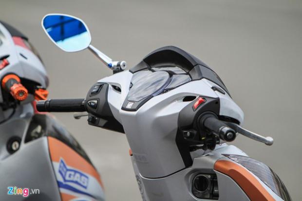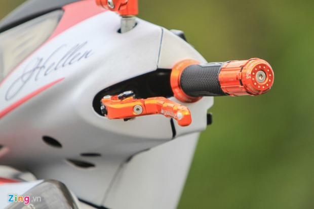 Chủ xe cũng trang điểm bằng một số món đồ chơi nổi bật như tay thắng và bao tay màu cam nổi bật, đồng phong cách với bộ tem.