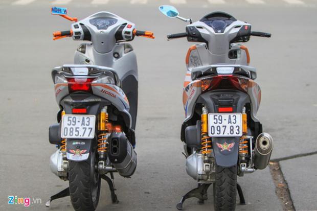 Đây là hai chiếc Honda SH300i thuộc hai thế hệ khác nhau. Bản bên phải là SH đời 2009 và chiếc còn lại là đời 2016. Hai chiếc thuộc sở hữu của câu lạc bộ Saigon SH Club (SSC).