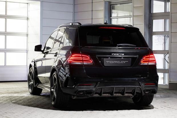 Chiếc Mercedes-Benz GLE này độc đáo ở chỗ vừa có khả năng bọc thép, vừa được nâng cấp cả nội và ngoại thất. Bộ bodykit INFERNO hoàn toàn bằng sợi carbon từ TopCar đem lại diện mạo mạnh mẽ, thể thao hơn cho xe, gồm cản trước, nắp ca-pô, ốp sườn, cản sau với bộ khuếch tán khí động và các ốp mở rộng viền hốc bánh xe.