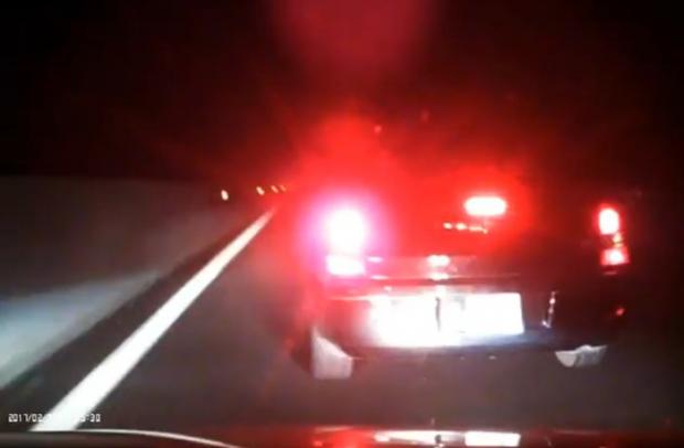 Tài xế lái chiếc ôtô màu đen đã có pha tạt đầu hết sức nguy hiểm và gây bức xúc đối với một chiếc xe khác đang di chuyển cùng chiều bên làn trái trên cao tốc Hà Nội - Hải Phòng trong đêm tối.