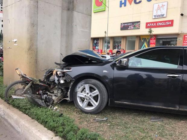 Chiếc Toyota Camry được cho là do một người đàn ông trung tuổi điều khiến có dấu hiệu say rượu, đâm liên tiếp vào nhiều xe máy trước khi ép nát một xe Dream vào cột trụ của dự án đường sắt Cát Linh - Hà Đông.