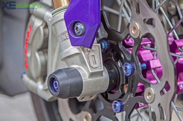 Trước đây, bản độ này có 'chi chít' đồ chơi hạng nặng thừa hưởng từ rất nhiều mẫu xe phân khối lớn, nhưng hiện tại với tiêu chí 'di chuyển ổn định hằng ngày', chủ xe quyết định lược bớt một số chi tiết, chỉ giữ lại những gì tâm đắc nhất cũng như những gì có tác dụng tốt nhất.
