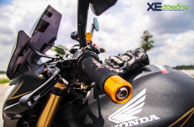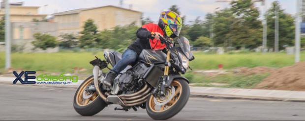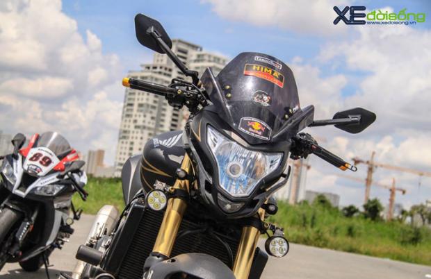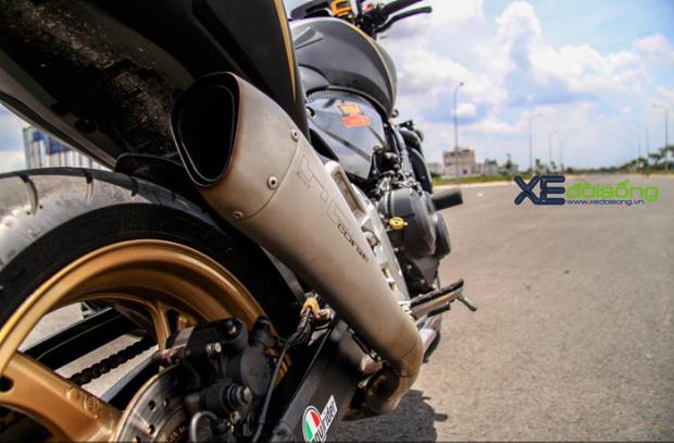 Naked Bike hạng trung Honda CB600F được một biker trẻ trong Hima Motor team độ ống xả HP Corse, cùm thắng Brembo, trợ lực Hyper Pro cùng nhiều món hàng trợ năng khác.