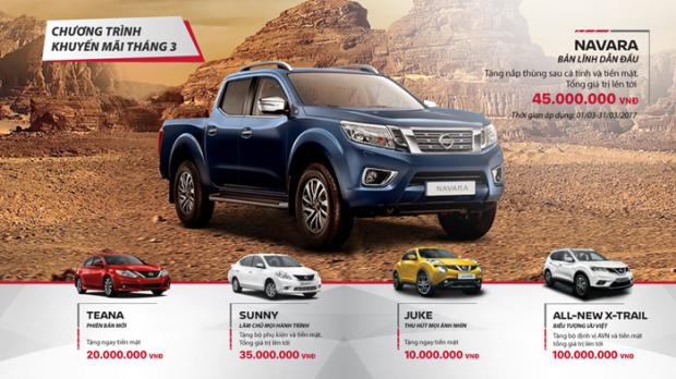 Từ ngày 1/3/2017 đến ngày 31/3/2017, Công ty TNHH Nissan Việt Nam (NVL) và công ty TNHH TCIE Việt Nam (TCIEV) chính thức triển khai chương trình khuyến mãi tháng 3/2017 cho các khách hàng khi mua tất cả các mẫu xe của thương hiệu Nissan.