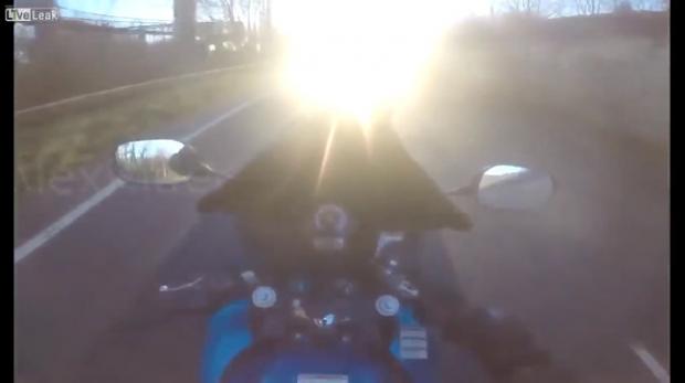 Chuyến đi vào sáng sớm ngày hè đã suýt trở thành chuyến đi cuối cùng của một biker khi anh chàng bị ánh nắng chiếu ngược khiến tầm nhìn bị hạn chế.