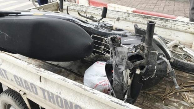 Chiếc xe máy của nạn nhân bị hư hỏng nặng.